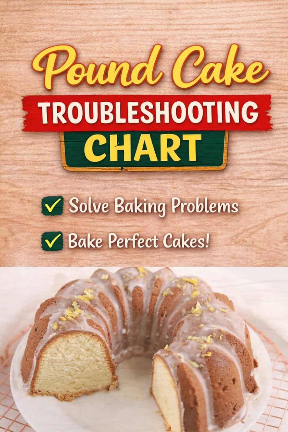 Not sure why your pound cake didn't turn out right? This pound cake troubleshooting chart breaks down common baking problems and shows you how to fix them with confidence. This is a simple pound cake troubleshooting chart to help you fix common baking problems like dry texture, sinking centers, and uneven crumb for consistent results every time.